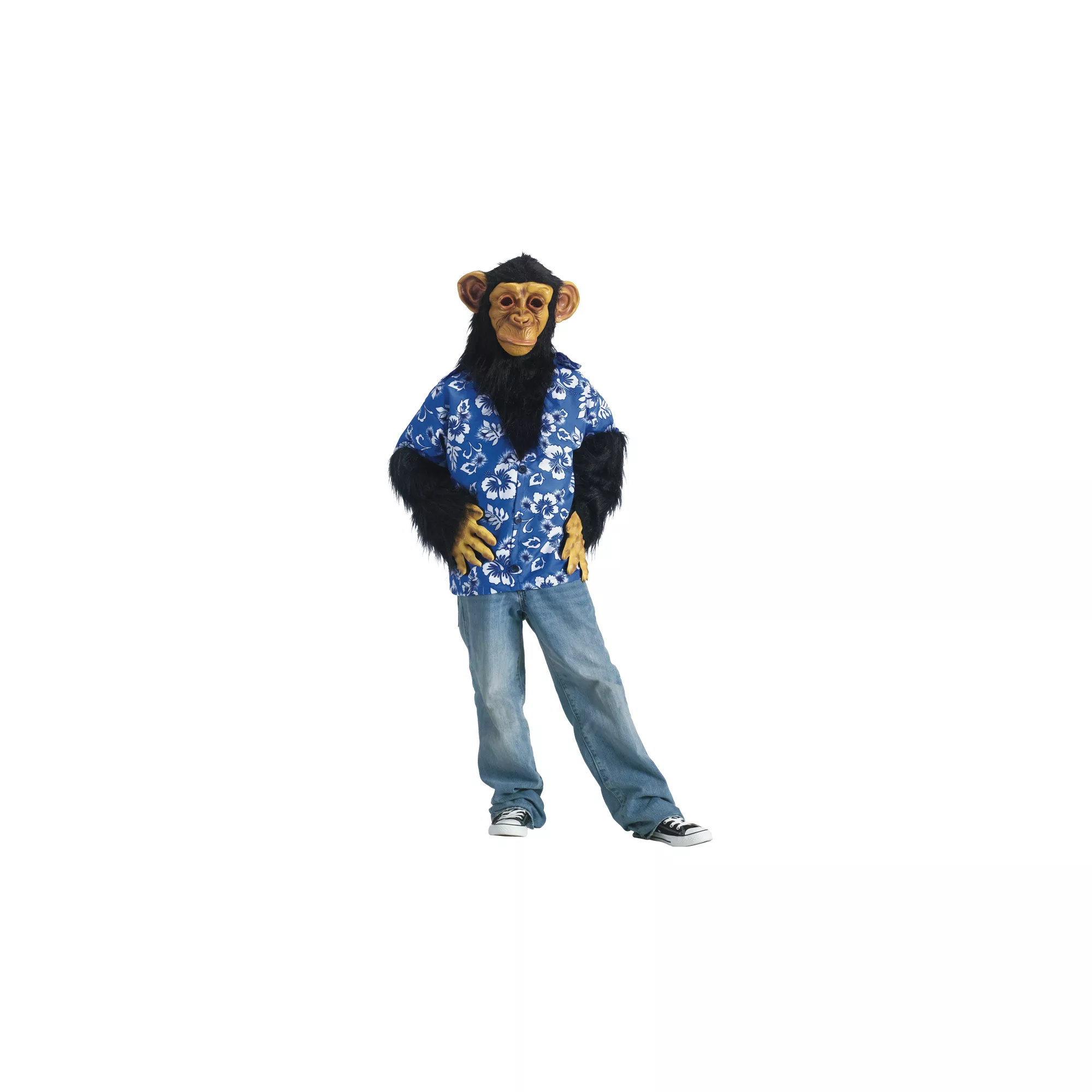 Get ready for lots of monkey business and zany madcap antics when you disguise yourself in this boy's Tropical Chimp costume. There's no end to the pranks you can pull since no one will know who you are beneath the realistic chimp face mask. Even your hands are obscured in this funny costume!
