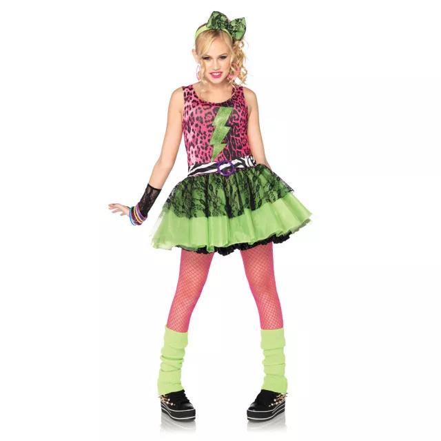 You could get away with wearing almost anything in the 80's. Luckily, you still can on Halloween! This Totally 80's Amy Tween Costume violates traditional fashion rules with a mix of contrasting patterns and colors that are particularly wacky - in a good way!
