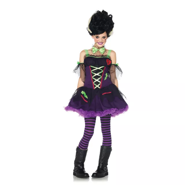 Walk down the aisle and into the party in this cute Frankie's Bride tween costume! You will surely scare up a good time at any Halloween party in this black and purple dress that comes with matching bow tie choker.