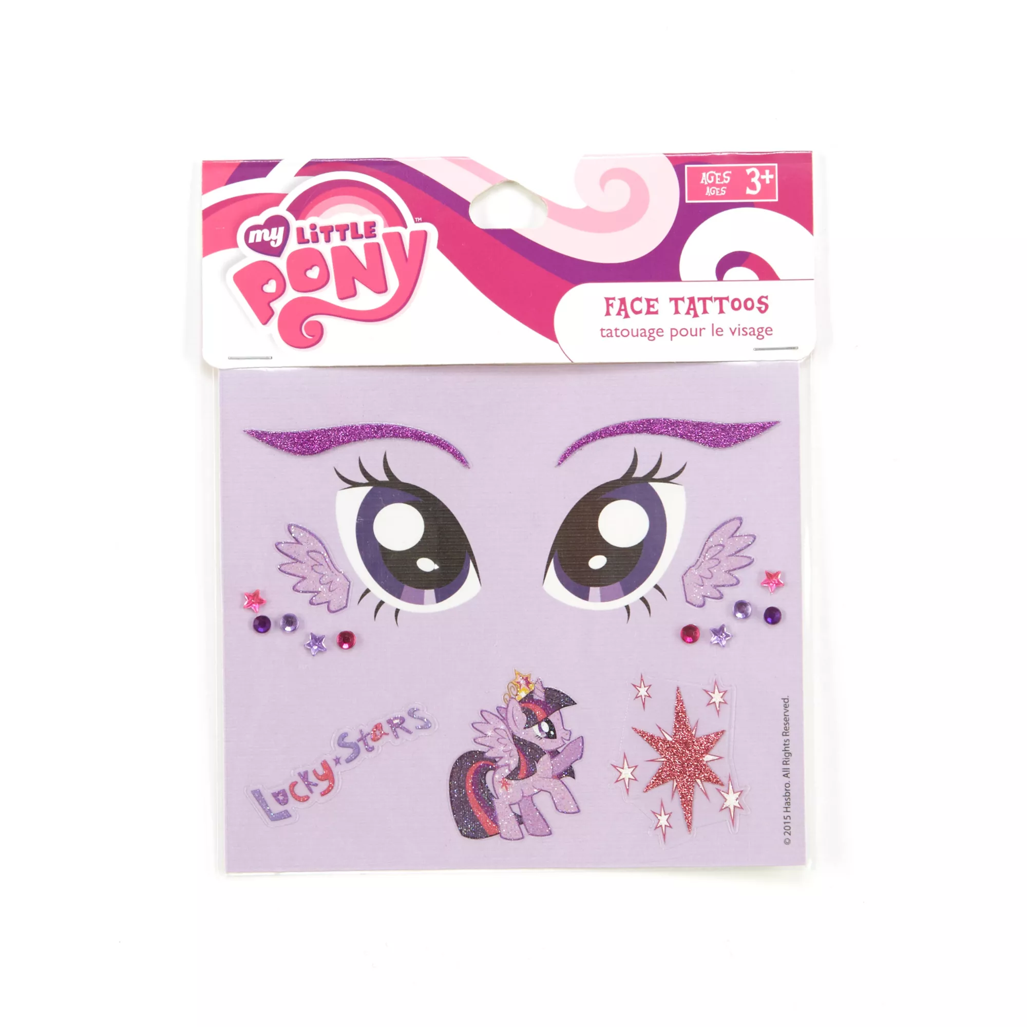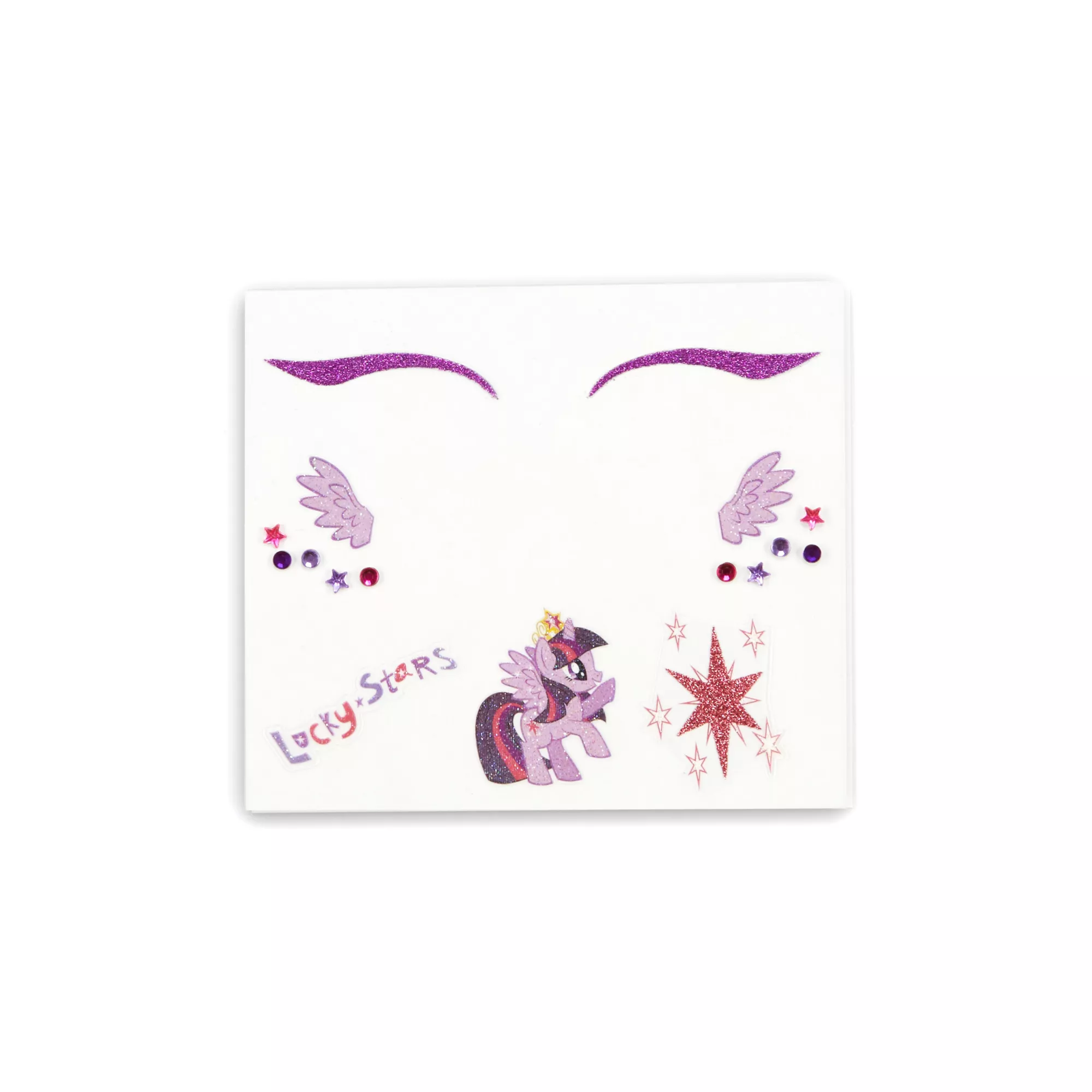 These decals will make you look as magical as friendship! These officially licensed My Little Pony Twilight Decals are a perfect addition to any Twilight Sparkle costume, and features 7 face stickers and 10 pink and purple gems! The face stickers include sparkly eye accents, purple wings, "Lucky Stars", a Twilight Sparkle sticker, and a bright pink star!