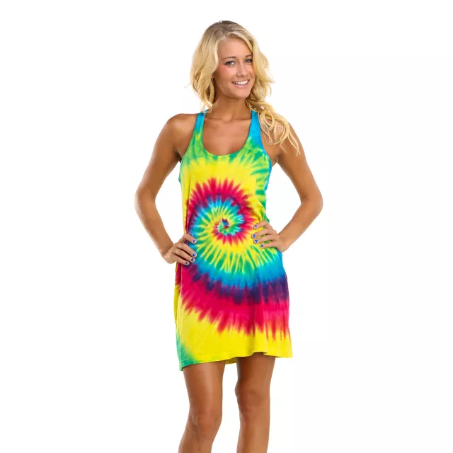 Peace out everywhere you go wearing this Tye Dye Tank Dress. Pair it with a peace sign chain, a pair of spitfire sunglasses, and a headband and you'll be good to groove.