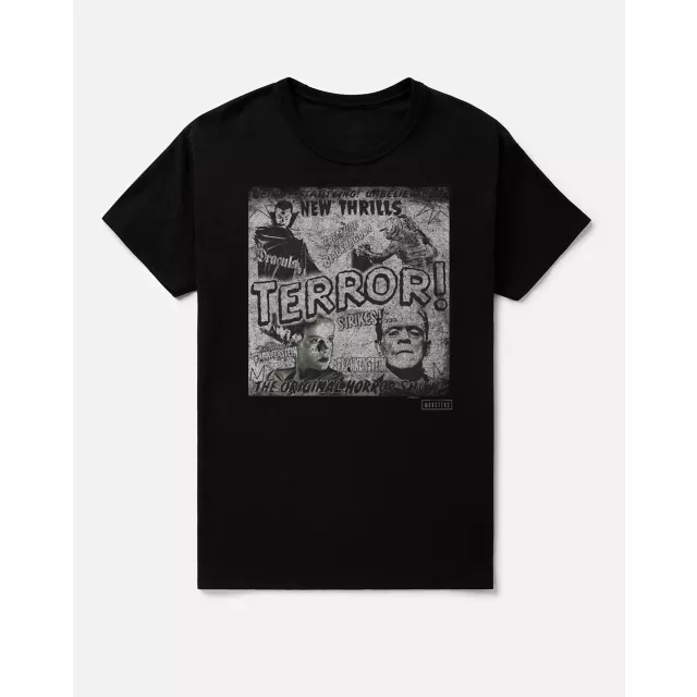 The classic thrills are the best kind. Pay homage to the legends of classic horror when you sport this officially licensed Universal Monsters The Original Horror Show T Shirt! This retro-inspired tee is an absolute must-have for your next scary movie marathon.