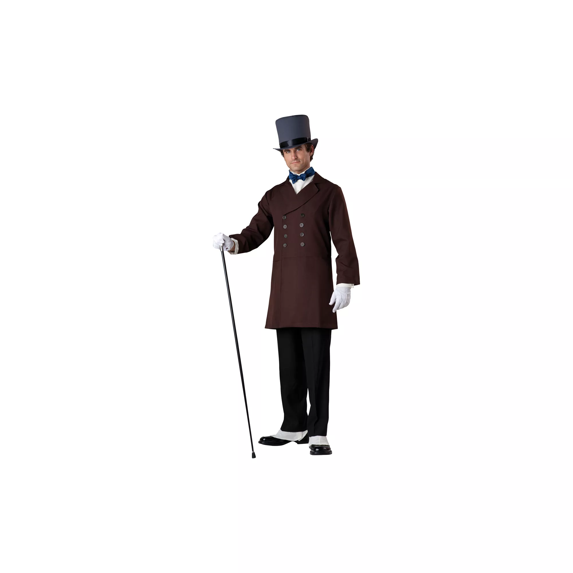 You'll look incredibly dapper when you wear the Victorian Gentleman Adult Costume. This coat features attached shirt cuffs and comes complete with a dickie and attached bow tie, hat and spats. Impress the crowd on Halloween with this awesome costume.
