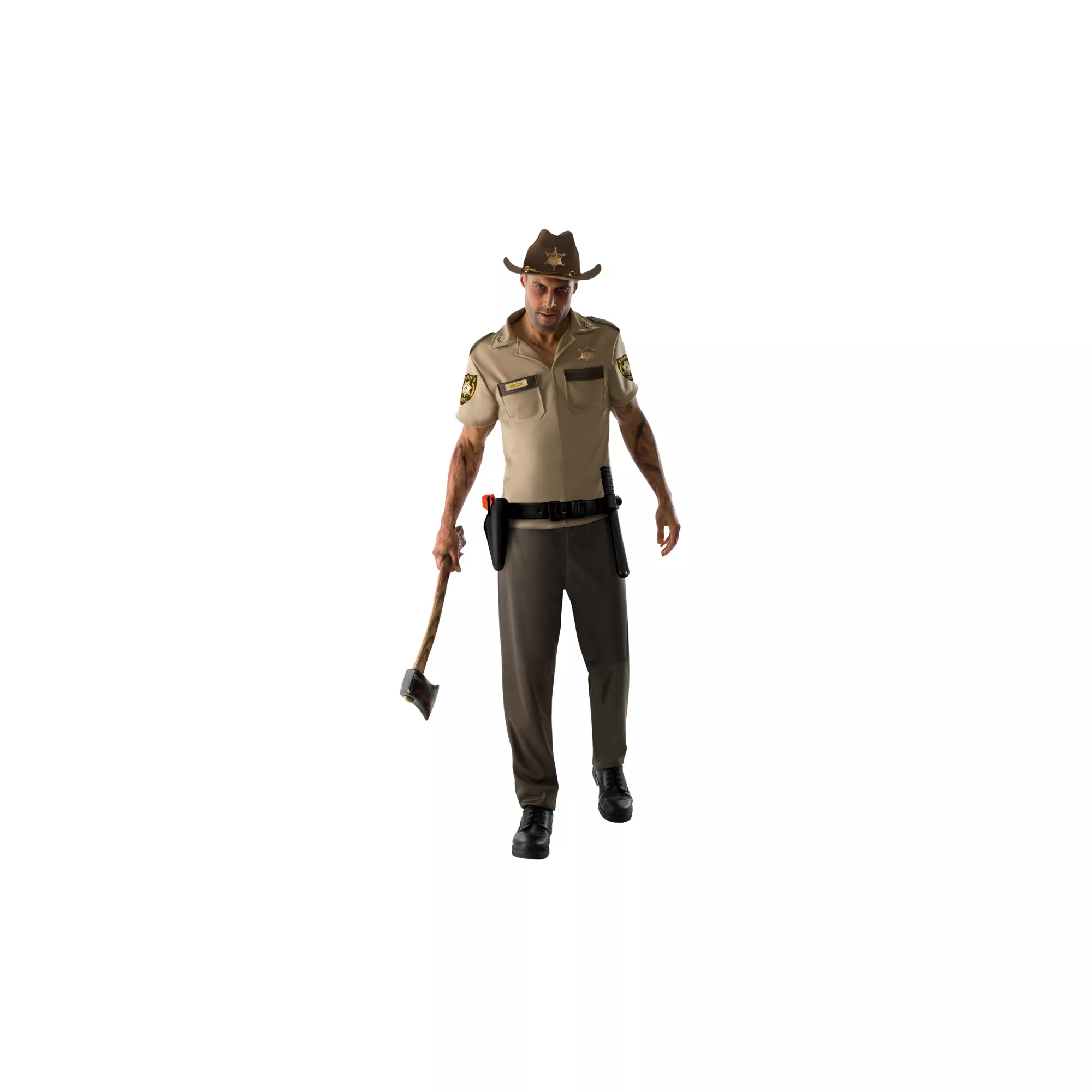 Wounded in a shoot-out, put into a coma and awakened to a world overrun with zombies, somehow he keeps on living against all odds and Rick Grimes prevails. Keep it going when you wear the officially licensed The Walking Dead Rick Grimes adult mens costume on Halloween and fight all the zombies who cross your path.