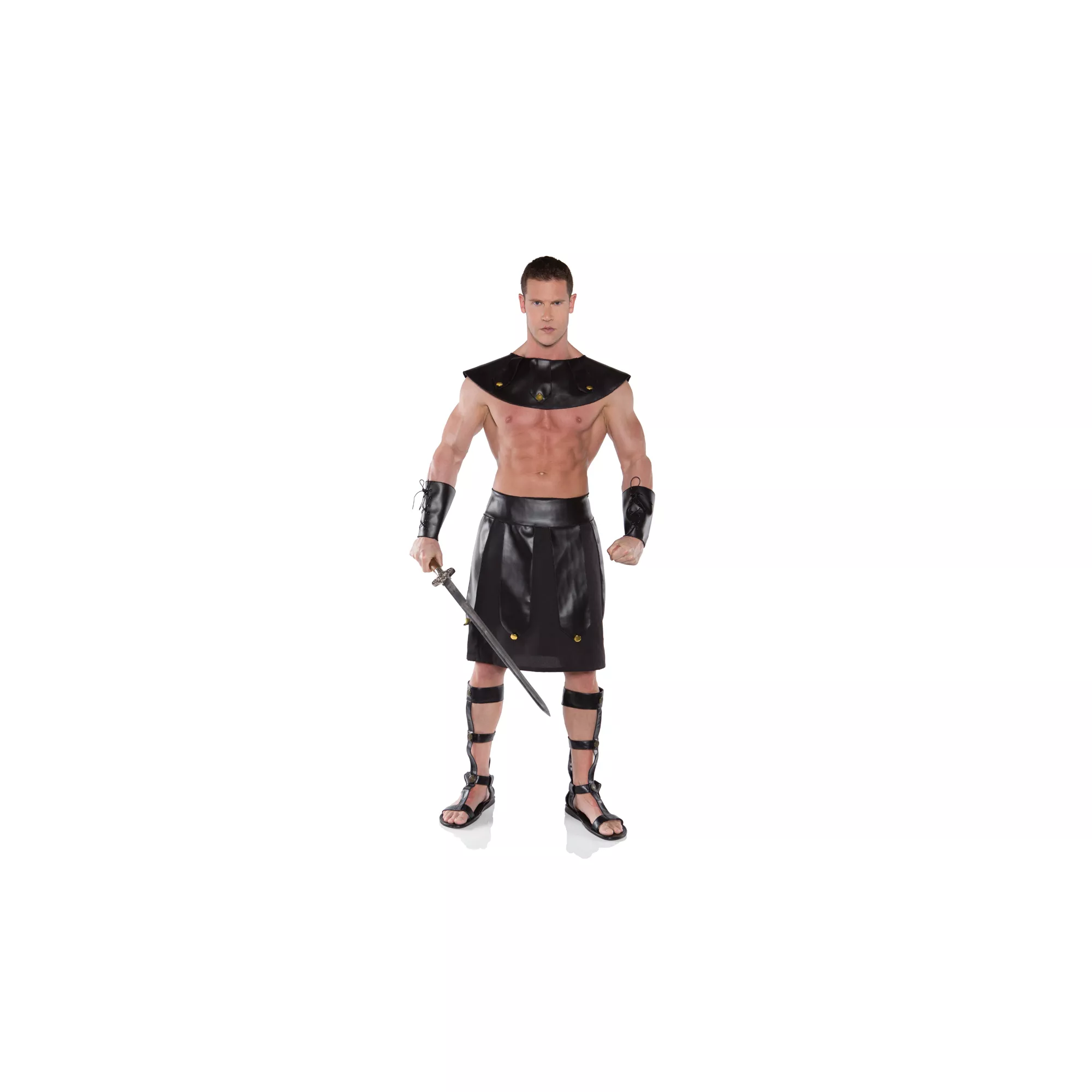Send your enemies packing when you arrive in the Warrior Adult Costume. This black, polyester skirt comes complete with a matching belt, collar and arm guards. Take what you want and leave the rest.