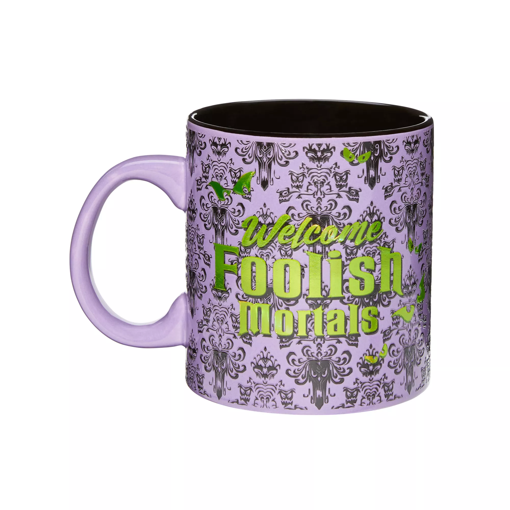 Get in the Halloween mood the next time you go to enjoy your morning coffee when you decide to use this officially licensed Haunted Mansion coffee mug. This stylishly patterned mug features the phrase "Welcome foolish mortals" on the front and is sure to make a spooky addition to your mug collection.