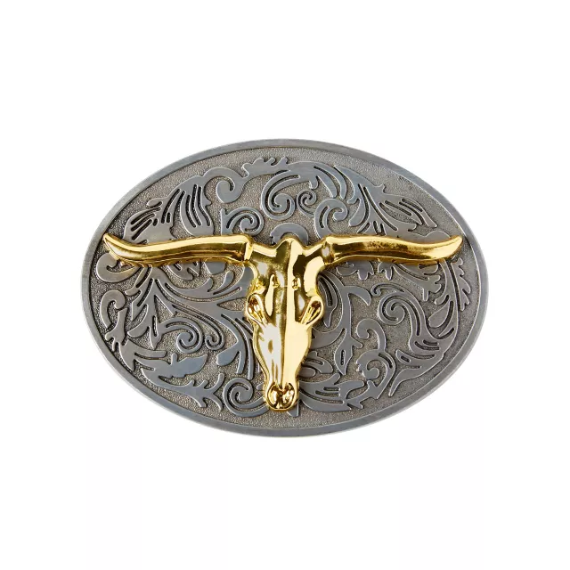 Keep your breeches up, cowboys and cowgirls! This metallic belt buckle features a shiny Texas Longhorn and can be secured to your favorite belt.