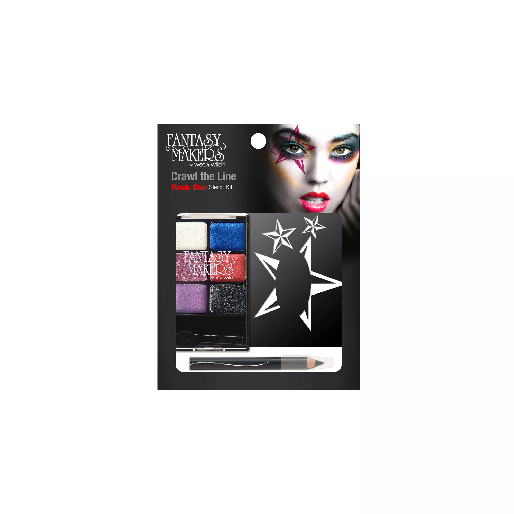Ready to rock out? In the Wet n Wild Rock Star Crawl the Line Kit you can complete your rock or pop star makeup look with this awesome star eye stencil and electric glitter makeup colors; this palette is basically a fusion of Lady Gaga and David Bowie style makeup.
