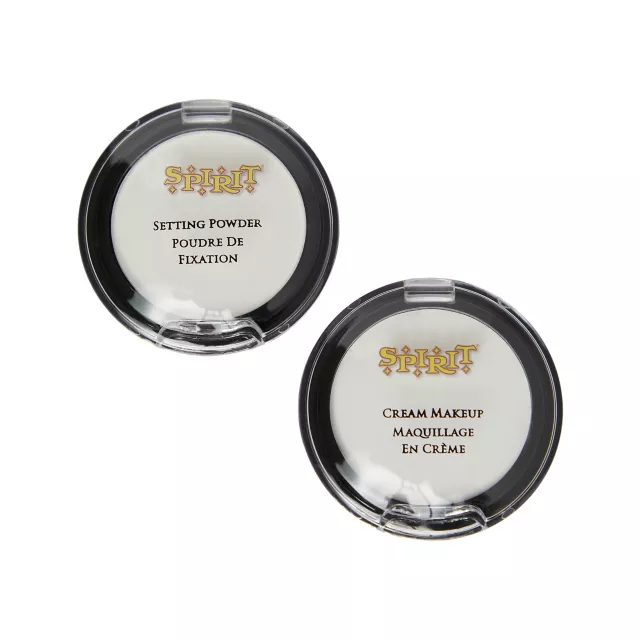 Create the perfect makeup look this Halloween with this white cream makeup and setting powder set!
