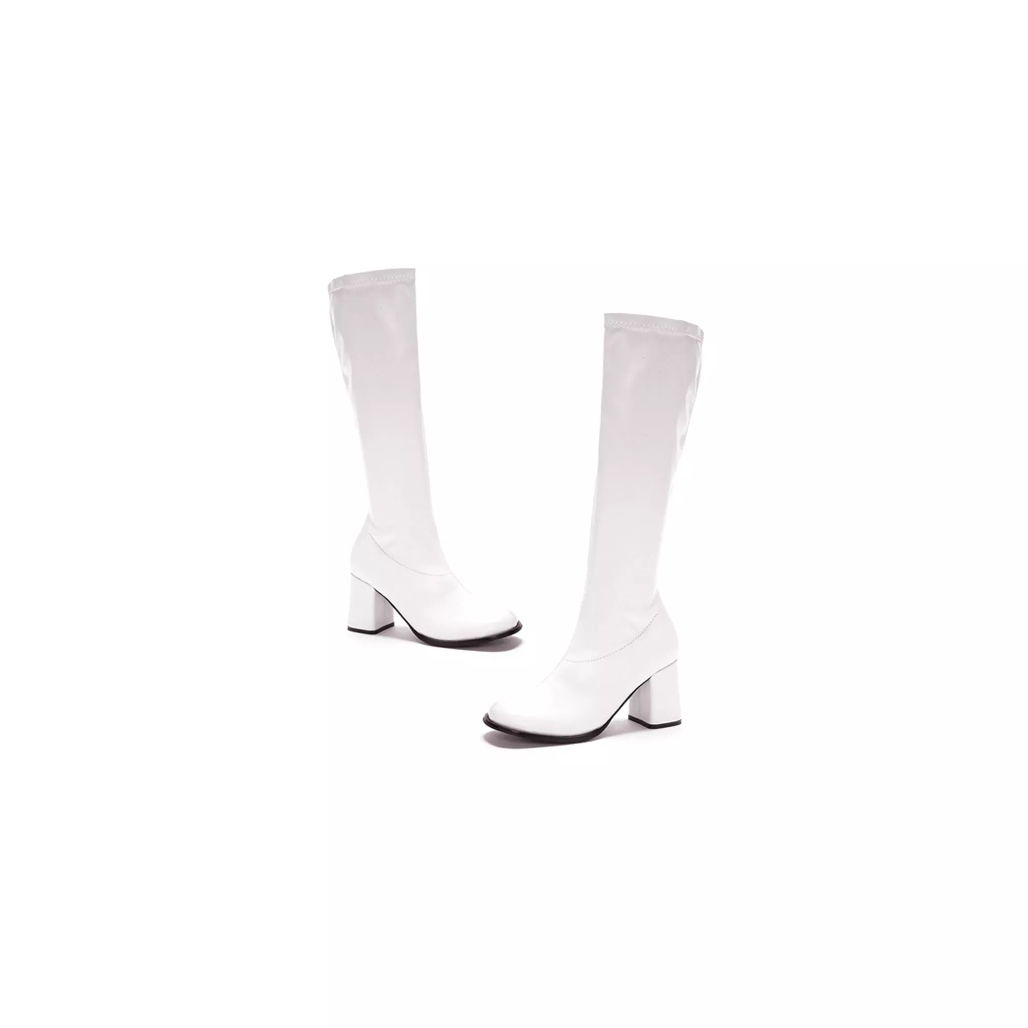 Step up the sexiness of your Halloween costume with a White Go-Go Boot. Use this versatile accessory to complete your disco or mod costume. With their 3-inch block heels, these sexy boots will ensure that your costume towers over the competition!
