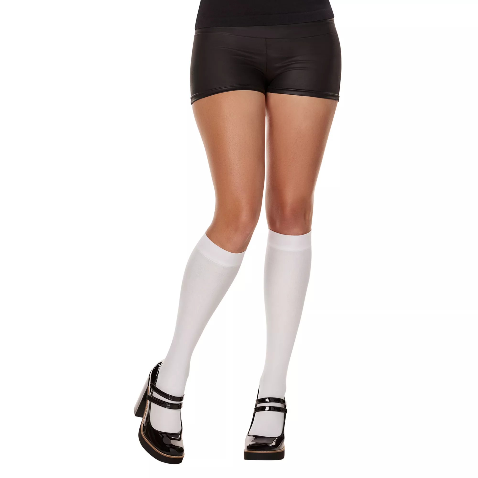 Pull on a pair of these classic white nylon knee highs to add schoolgirl style to any costume! Perfect for storybook character, schoolgirl, and nurse costumes alike.