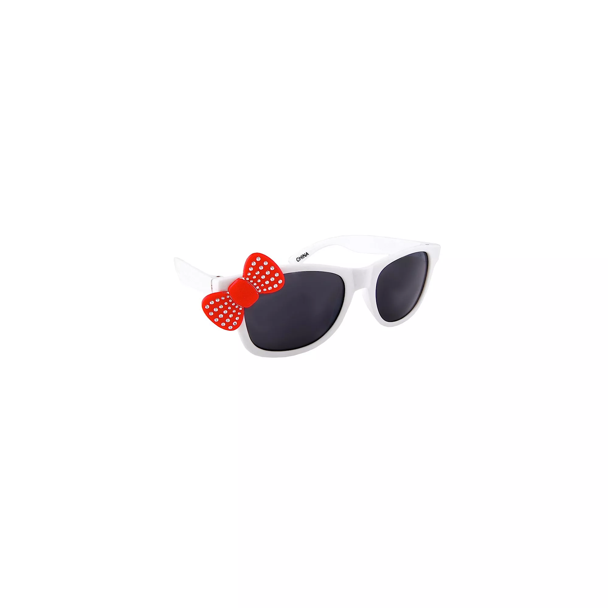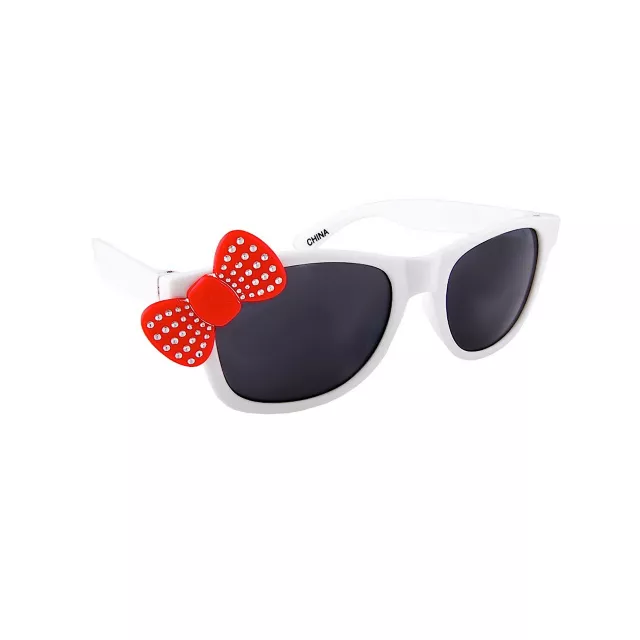 Top off your look with a pretty red bow when you wear the White with Red Bow Sunglasses. This pair of white framed glasses feature a red bow detail on the right temple along with dark lenses.