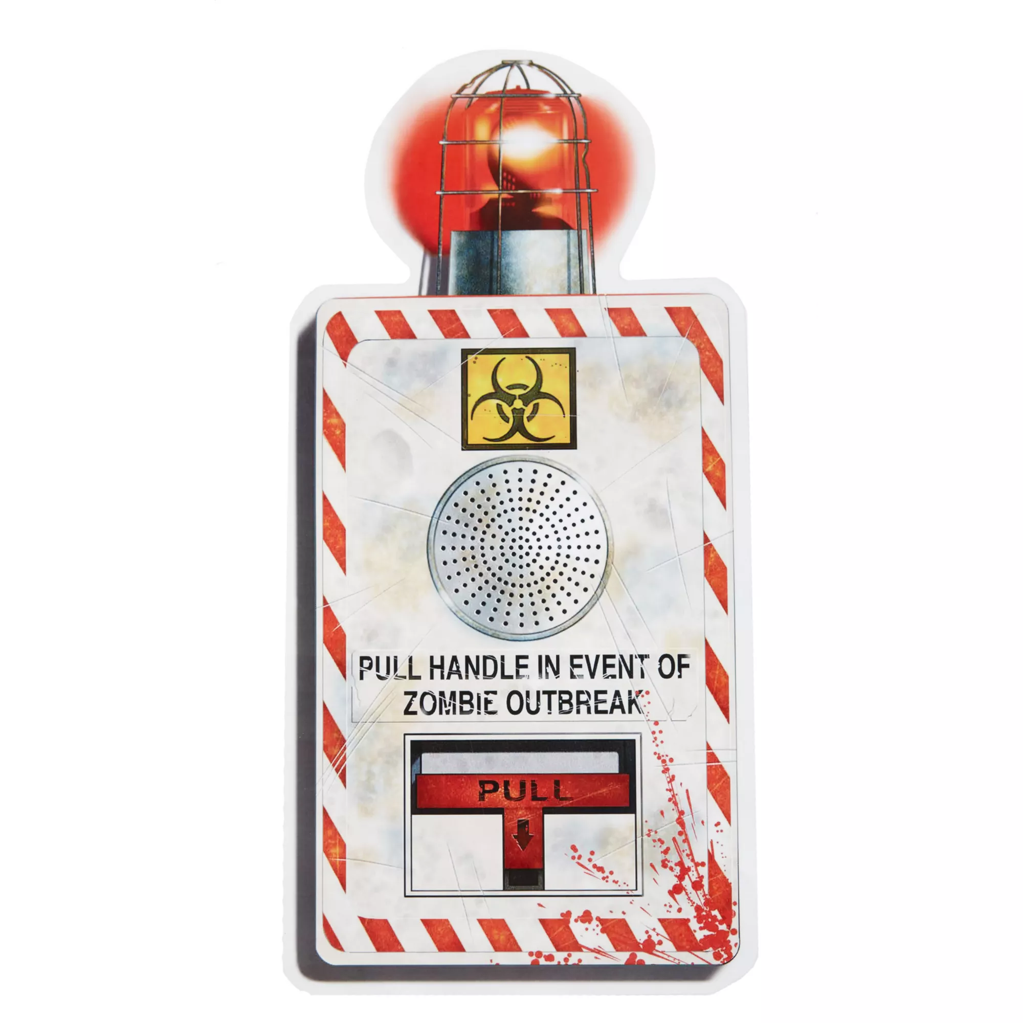 Complete your zombie apocalypse look with this zombie outbreak wall cling! Equipped with directions, this control box tells you to pull handle in event of zombie outbreak.