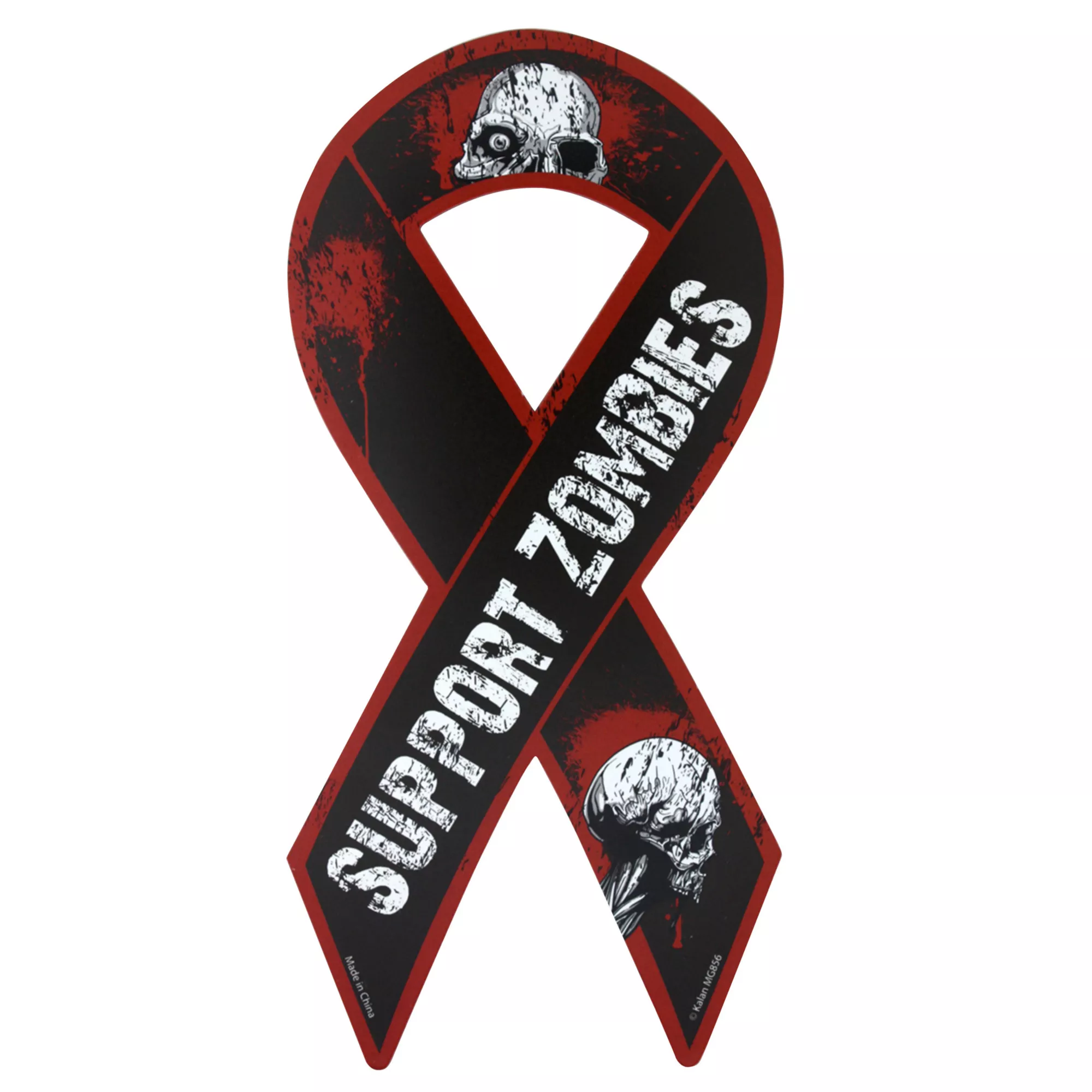 When you want to raise awareness for a cause, a walkathon is a good idea, and so is the classic refrigerator/car magnet. Support awareness for the insatiable need of zombies to kill everyone with this Zombie Skull support magnet and watch of people frantically run away!